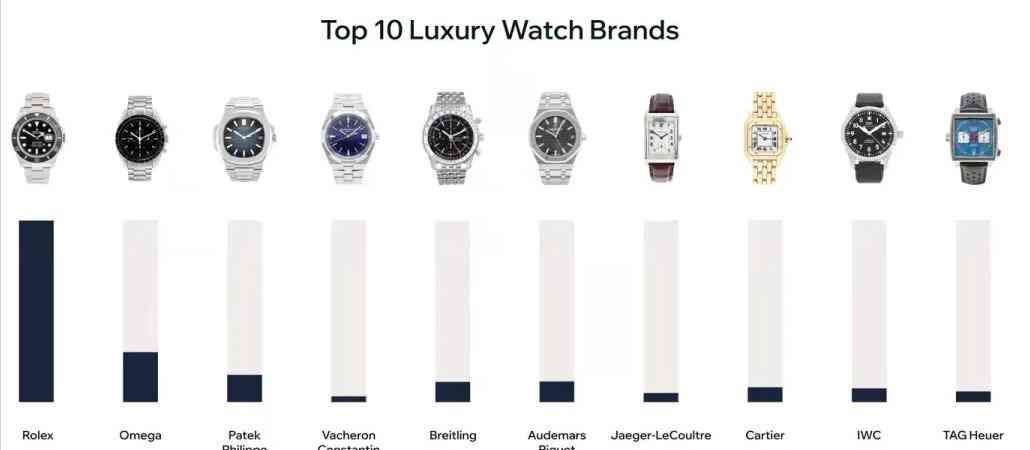 排名前10的豪华手表品牌及其市场份额(以GMV衡量)。
